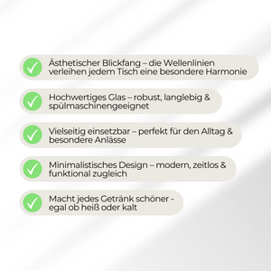 - Minimalistisches Design: Die sanften Wellenlinien des Glases schaffen ein modernes und harmonisches Erscheinungsbild.